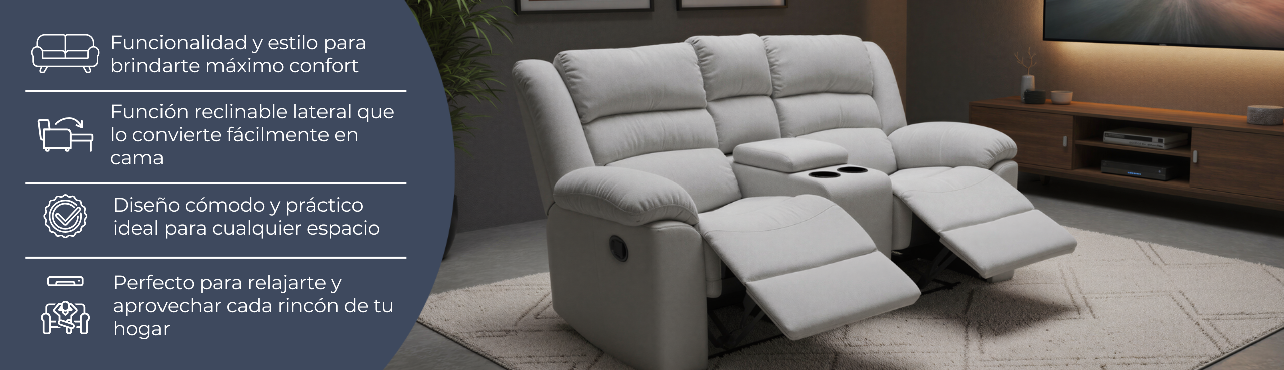 El Love Seat Denver combina funcionalidad y confort en un diseño compacto. Disponible en gris claro y gris oscuro, este love seat reclinable incluye portavasos y un práctico almacenaje integrado, ideal para mantener todo a la mano mientras disfrutas de un momento de relajación. Su diseño moderno y funcional lo convierte en la opción perfecta para cualquier sala.