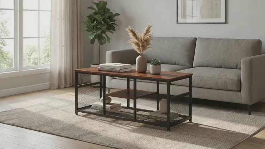 El Mueble de TV Loretto es una pieza funcional y elegante que aporta un estilo industrial y moderno a cualquier espacio. Su superficie de melamina en color café brinda un acabado cálido y sofisticado, mientras que su estructura de metal con recubrimiento antipolvo garantiza resistencia y fácil mantenimiento.