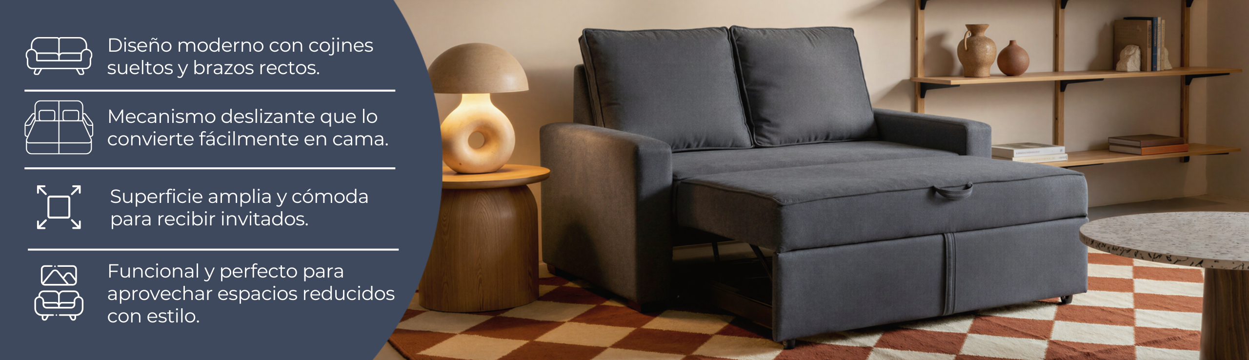 El Sofá cama Luma combina funcionalidad, comodidad y diseño en un solo mueble, siendo una solución ideal para hogares que buscan aprovechar cada espacio con estilo.